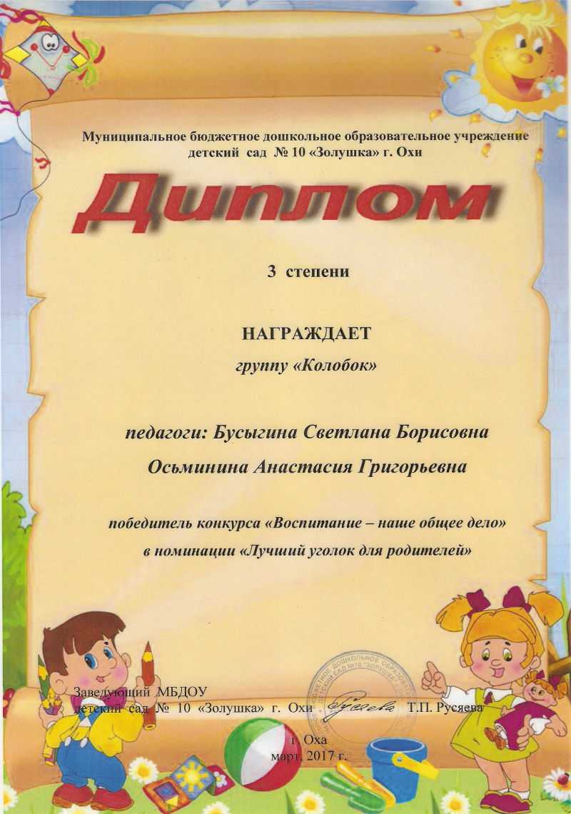 сайт Бусыгиной Светланы воспитателя МБДОУ детский сад №10 "Золушка" г. Оха
